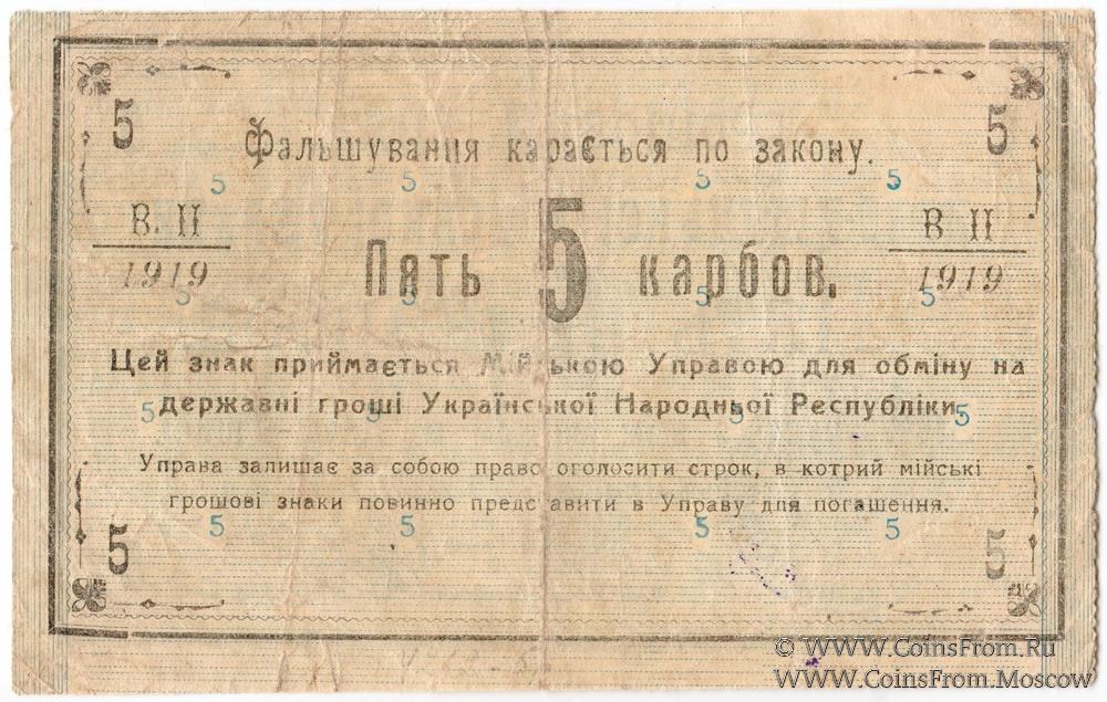 5 карбованцев 1919 г. (Новая Ушица)