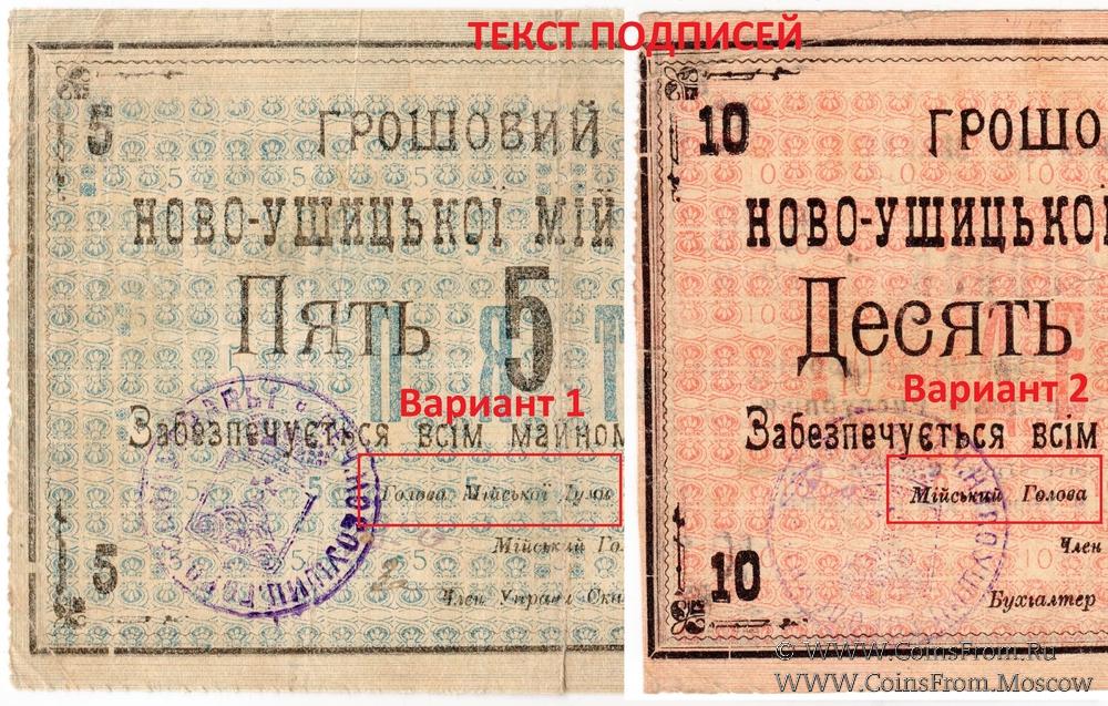 Денежный знак (Грошовій знак) 1919 г. Текст подписей Вариант 2: "Мiйський Голова". Новоушицкая Городская управа.