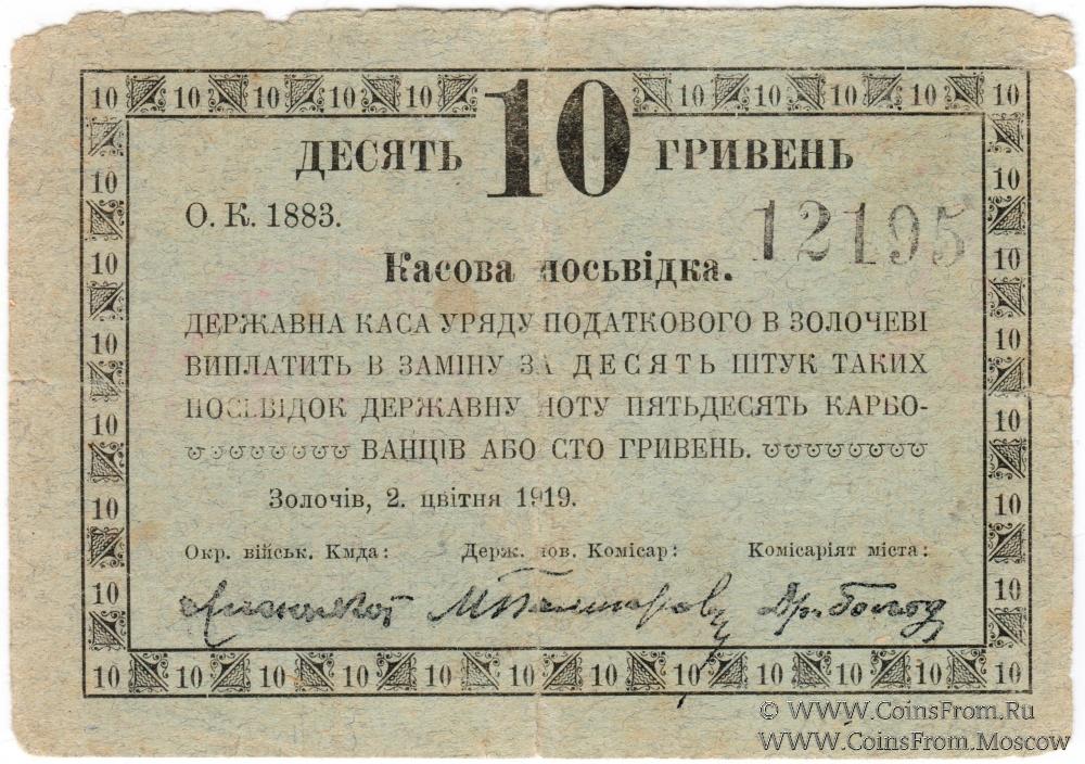 Государственный Уездный Комиссариал в Золочеве (Державнний Повiтовий Комiсарiят в Золочевi).