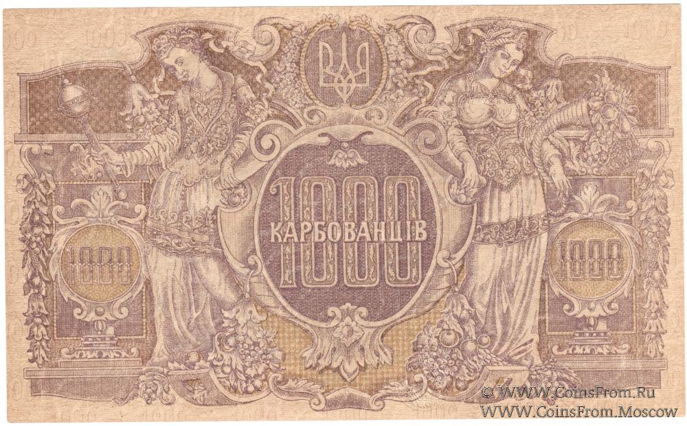 Выпуск 2 (1919 г.) Серия АН. Водяной знак - волны. Без фирнисовой сетки. Знак Государственного Казначейства (Знак Державної Скарбниці) без даты (1918 г.).