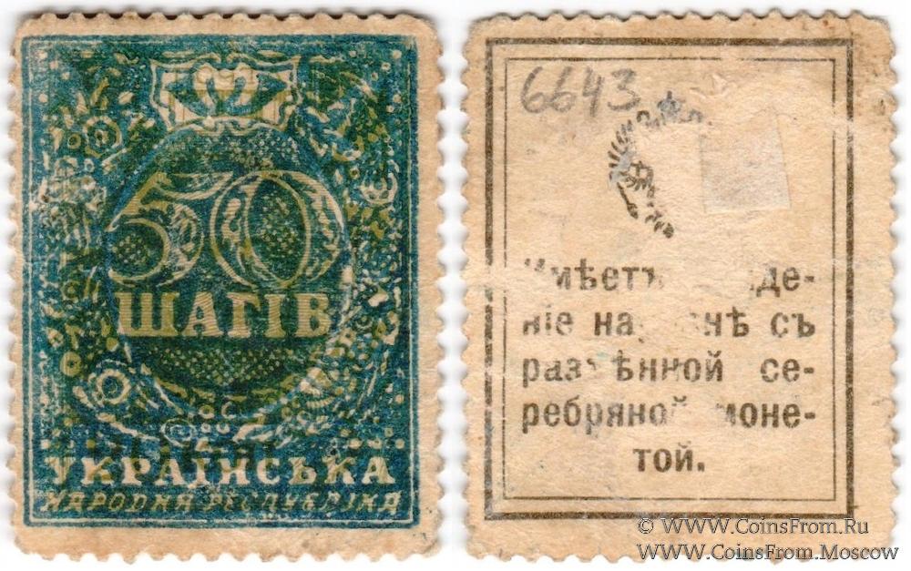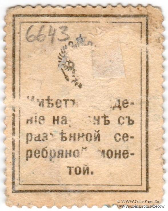 Разменные марки-деньги без даты (1918 г.). БРАК (ПРОБА) печати: цвет рисунка на аверсе синий, вместо красного.