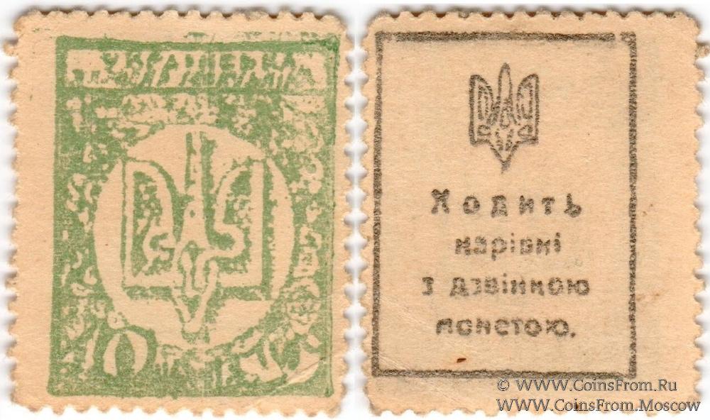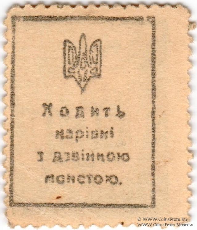 Разменные марки-деньги без даты (1918 г.). Фальшивая в ущерб обращению (рисунок не четкий, отличается от оригинала).