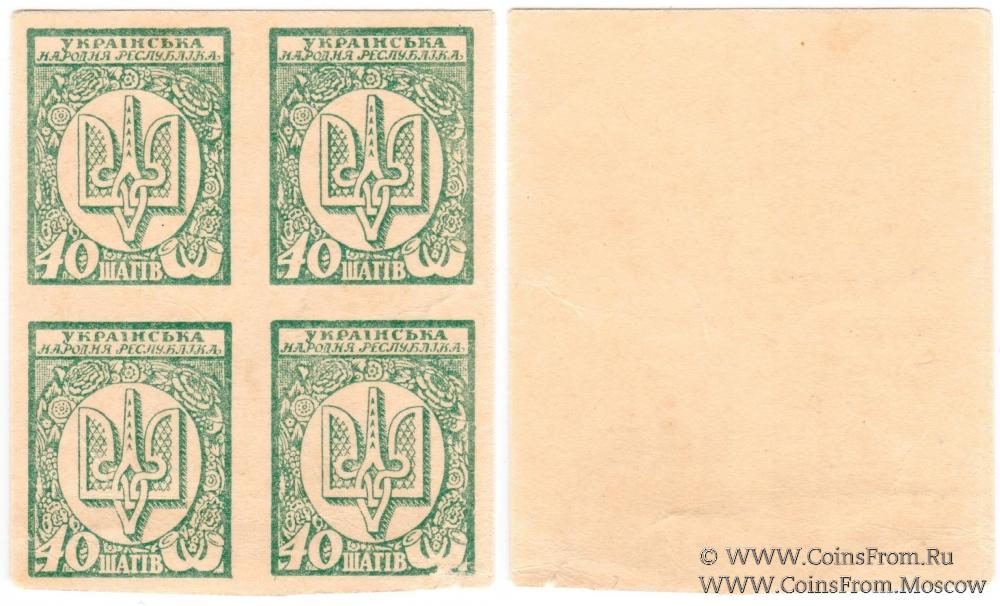 Разменные марки-деньги без даты (1918 г.). БРАК (ПРОБА) печати (недопечатка): только аверс, без реверса. Квартблок. Без зубцов.