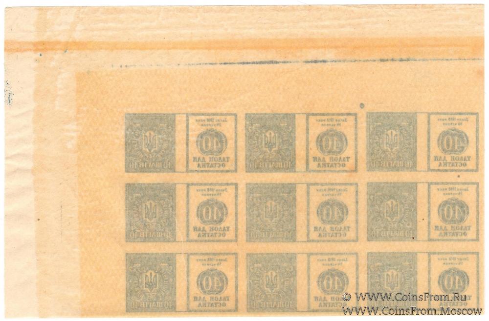 Талон для остатка. Марки-деньги без даты (1918 г.). Часть листа (6 х 3, край). Односторонняя. Бумага тонкая. Без зубцов.
