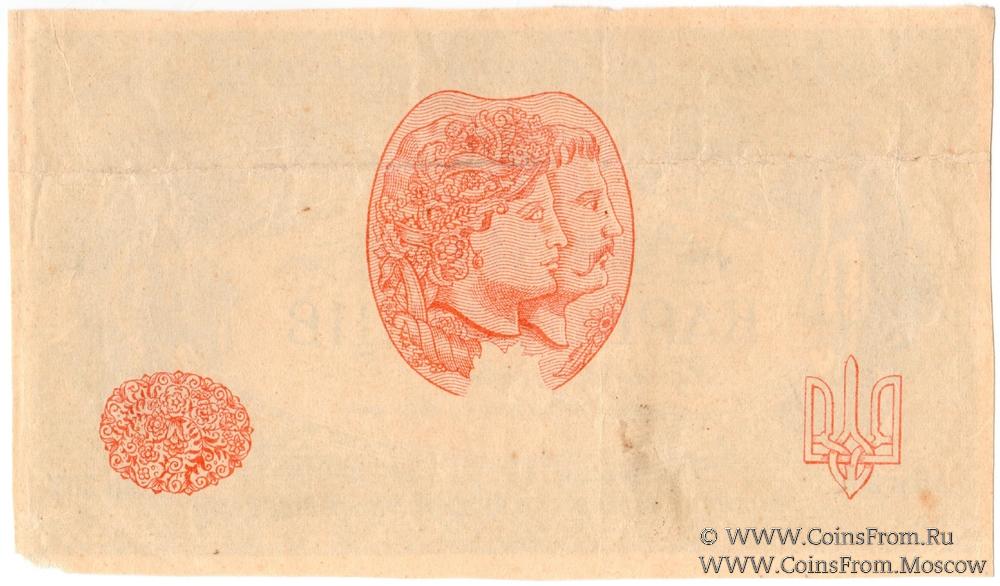 БРАК: недопечатка реверса (только медальон и виньетка). Серия "АК" высотой __ мм. Серии АК II 194-214. Киевский выпуск. Знак Государственного Казначейства (Знак Державної Скарбниці) без даты (1918 г.).