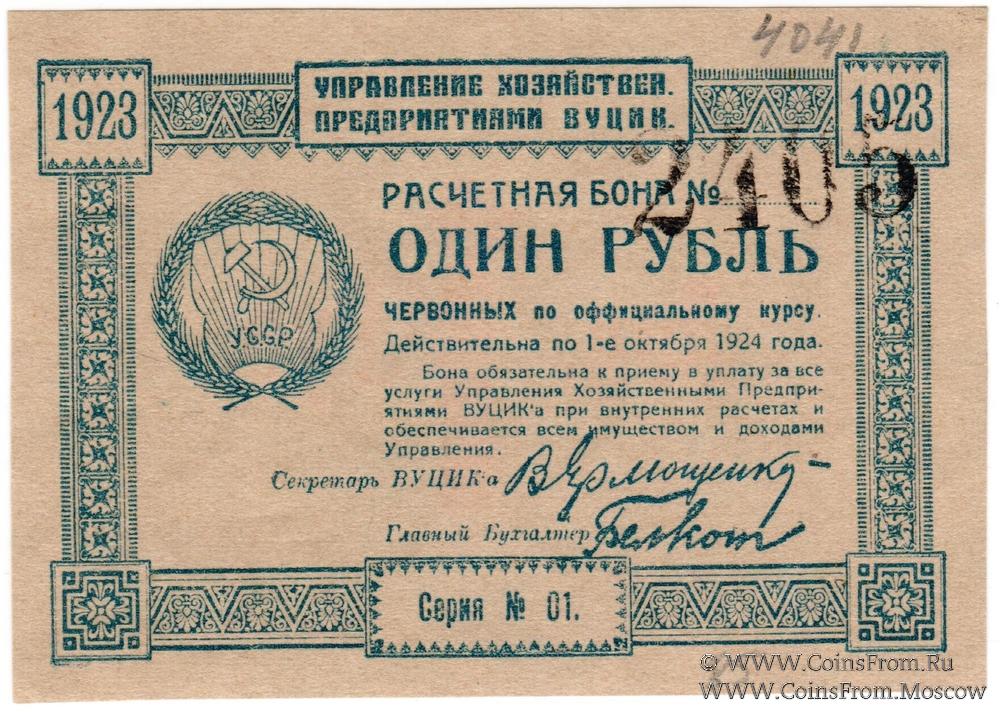 Расчетная бона ВУЦИК 1923 г. Номер нумератором. Печать ВУЦИК на реверсе.