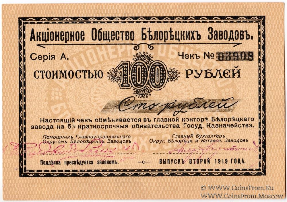 100 рублей 1919 г. (Белорецк)