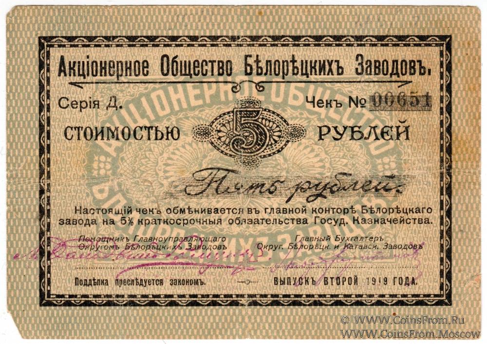 Чек. Выпуск 2. Серия Д. Малый формат. Акционерное Общество Белорецких Заводов.
