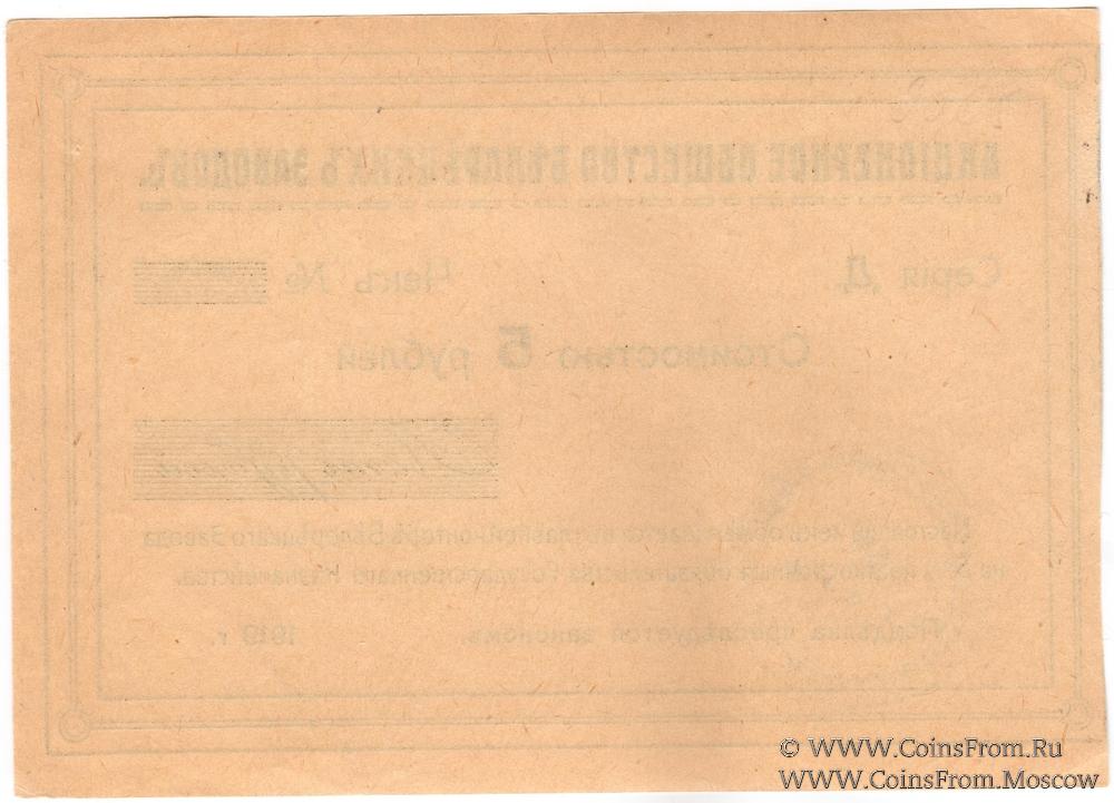 Чек 1919 г. Выпуск 1. Большой формат. Серия Д. Печать Правления. Акционерное Общество Белорецких Заводов.