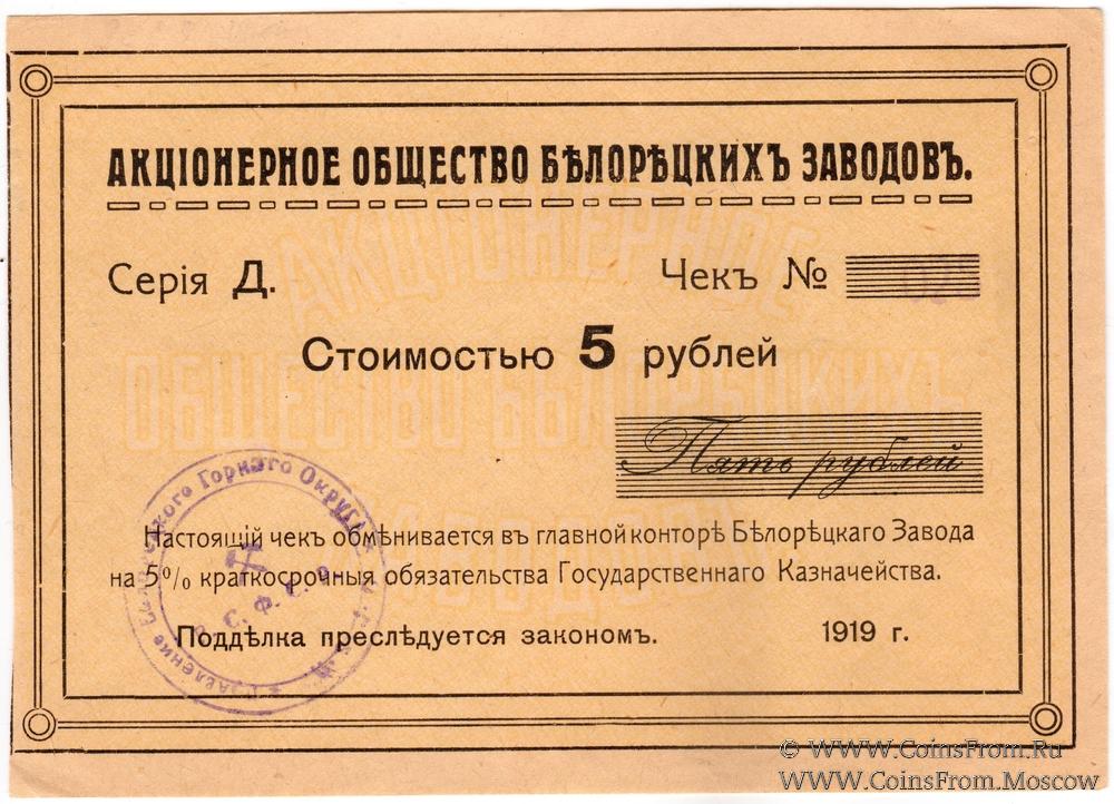 5 рублей 1919 г. (Белорецк)