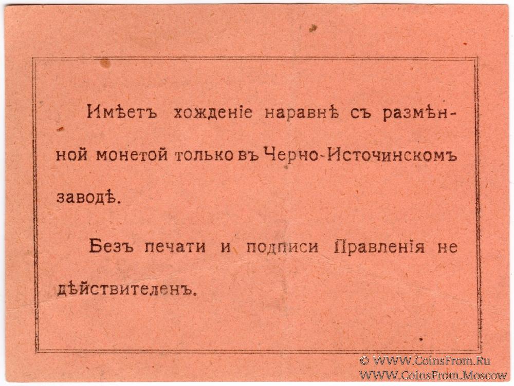 Кредитный разменный талон 1918 г. Печать, подпись. Вариант 1 шрифта (буква "Р" - "узкая"). Черно-Источинское Кредитное Товарищество. Черно-источинский завод.