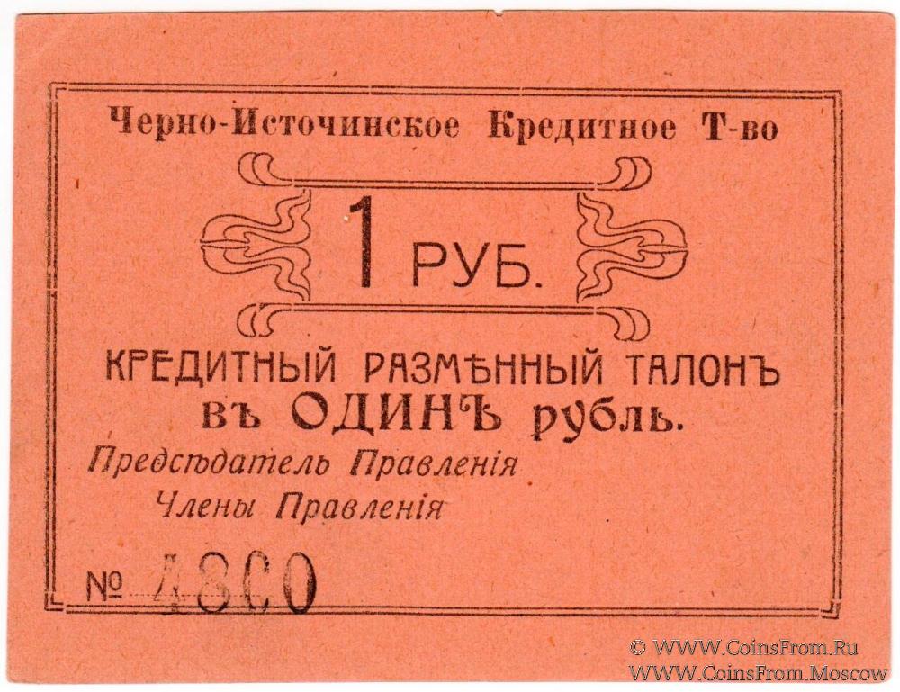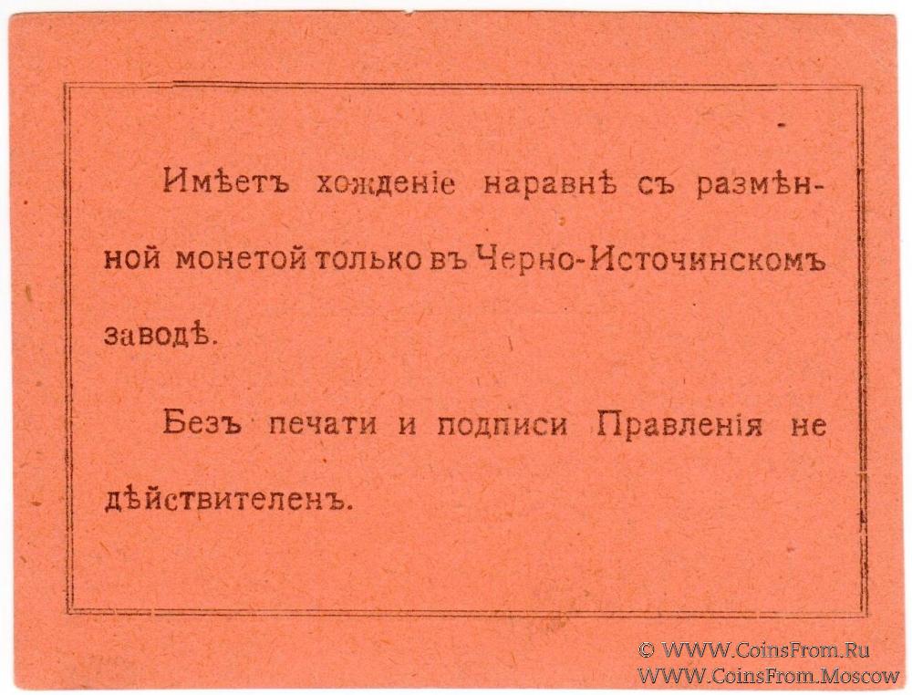 Кредитный разменный талон 1918 г. Вариант 1 шрифта (буква "Р" - "широкая"). Черно-Источинское Кредитное Товарищество. Черно-источинский завод.