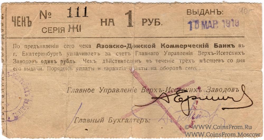 Азовско-Донской Коммерческий Банк за счет Главного Управления Верх-Исетских заводов.