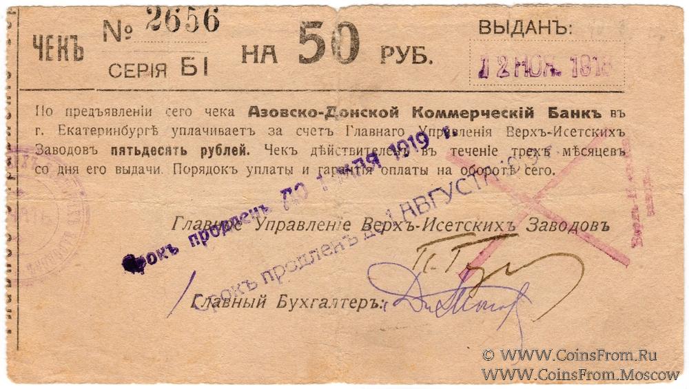 Азовско-Донской Коммерческий Банк (за счет Главного Управления Верх-Исетских заводов).