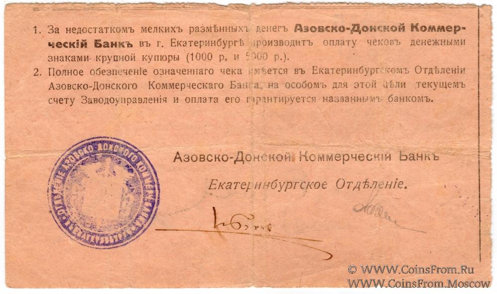 Чек. Серия ДI. Выдан 16 июня 1919 г. Крестообразное гашение. Азовско-Донской Коммерческий Банк (за счет Главного Управления Верх-Исетских заводов).