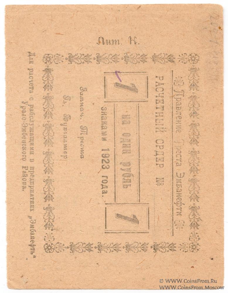 Вторичное использование: на реверсе расчетный ордер 1 рубль 1923 г. Правления Треста Эмбанефть.