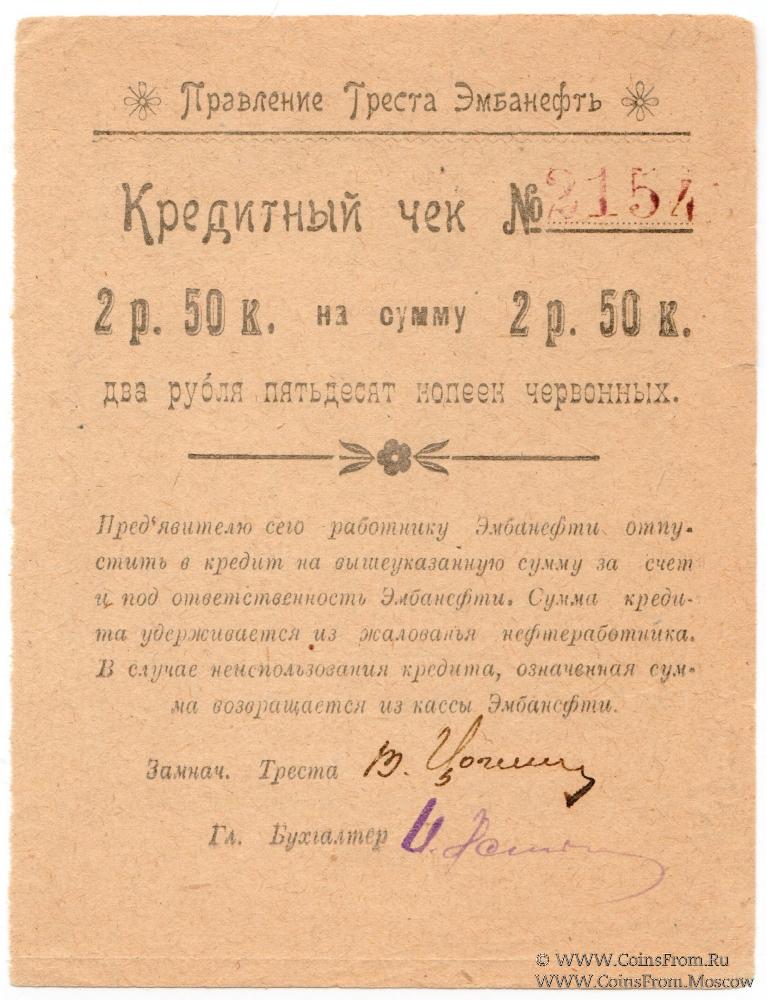 Кредитный чек 1923 г. (в червонных рублях). Правление Треста Эмбанефть.