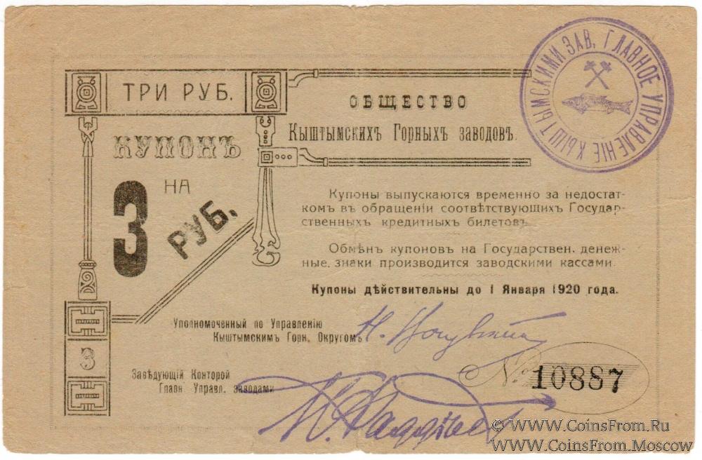 3 рубля 1919 г. (Кыштым)