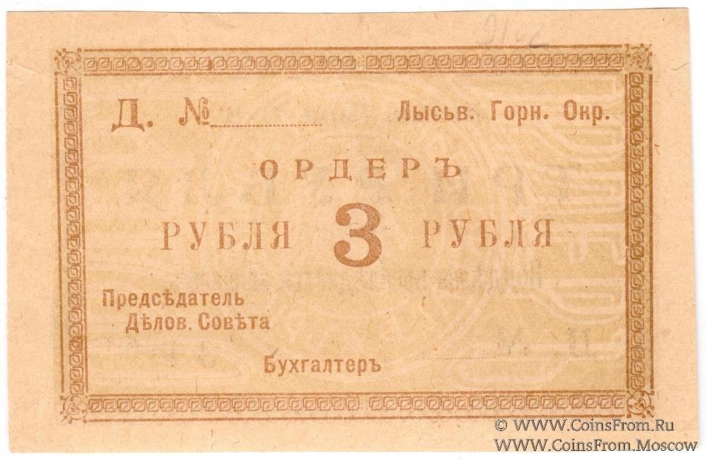 3 рубля 1918 г. (Лысьва)