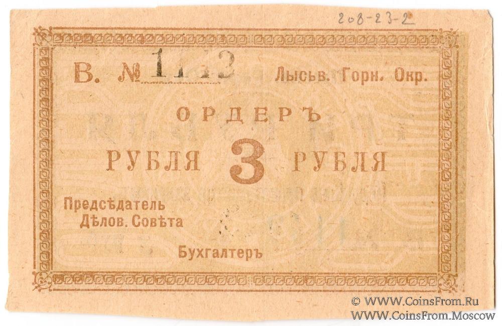 Ордер без даты 1918 г. Серия В. Бланк. Бумага жёлтая. Лысьвенский Горный Округ.
