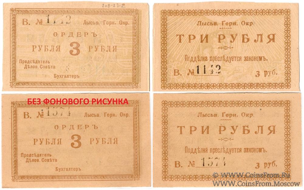 Ордер без даты 1918 г. БРАК: отсутствует фоновый рисунок. Серия В. Бланк. Бумага жёлтая. Лысьвенский Горный Округ.