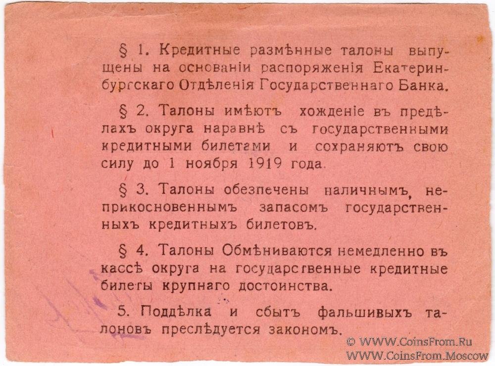 Кредитный разменный талон б/д (1918 г.). Законченный. Правительственное Правление секвестрированного Ревдинского горного округа.