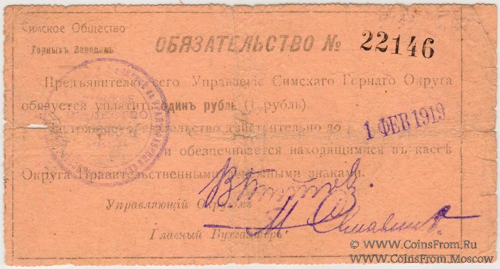На аверсе печать круглая: "СИМСКОЕ / ОБЩЕСТВО / ГОРНЫХЪ / заводов" (по центру в четыре строки) / " * ПЕРВОЙ на УРАЛЕ ФАБРИКИ СЕЛЬСКОХОЗЯЙСТВЕННЫХЪ МАШИНЪ и ОРУДIЙ" (по кругу).