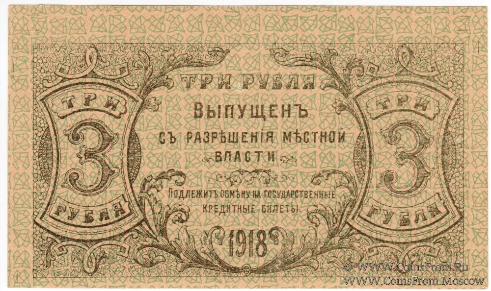 Денежный знак 1918 г. БРАК: смещение фона (брак обрезки). С разрешения местной власти (атаман Дутов А.И.).