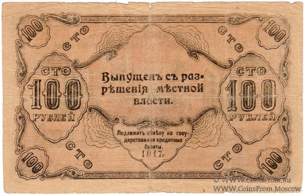 Денежный знак 1917 г. Серии 700-1400. Кассир: Чечко И.В. С разрешения местной власти (атаман Дутов А.И.).