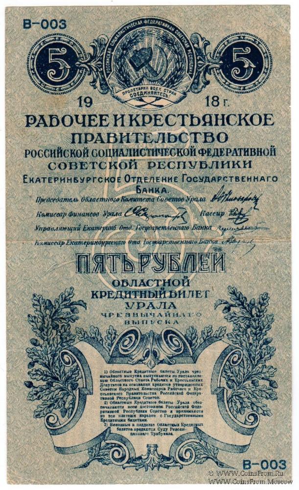 Областной кредитный билет Урала 1918 г. Серия В-003.