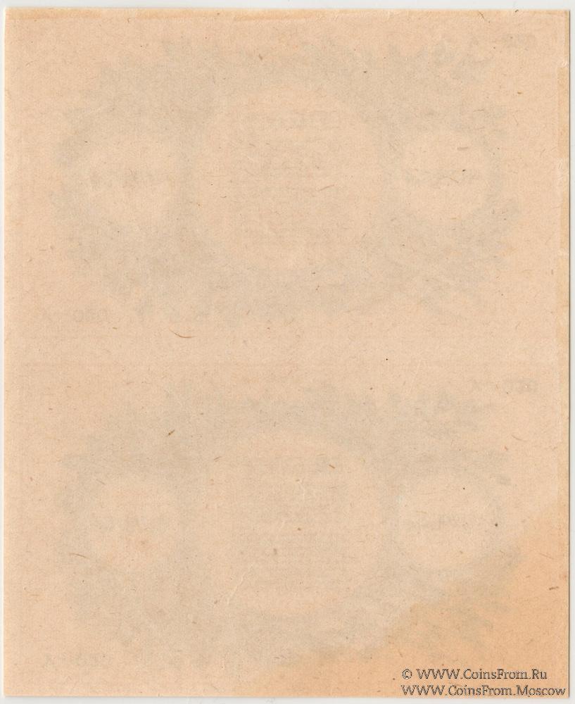 Областной кредитный билет Урала 1918 г. БРАК: сцепка вертикальная из двух реверсов (недопечатка). Екатеринбургское Отделение Государственного Банка.