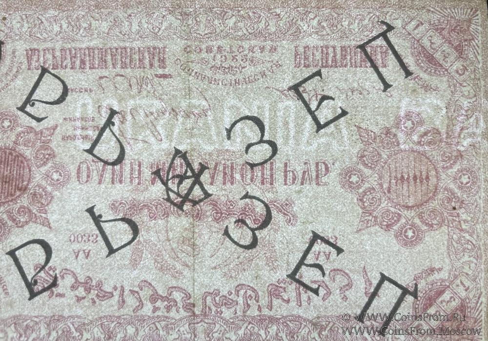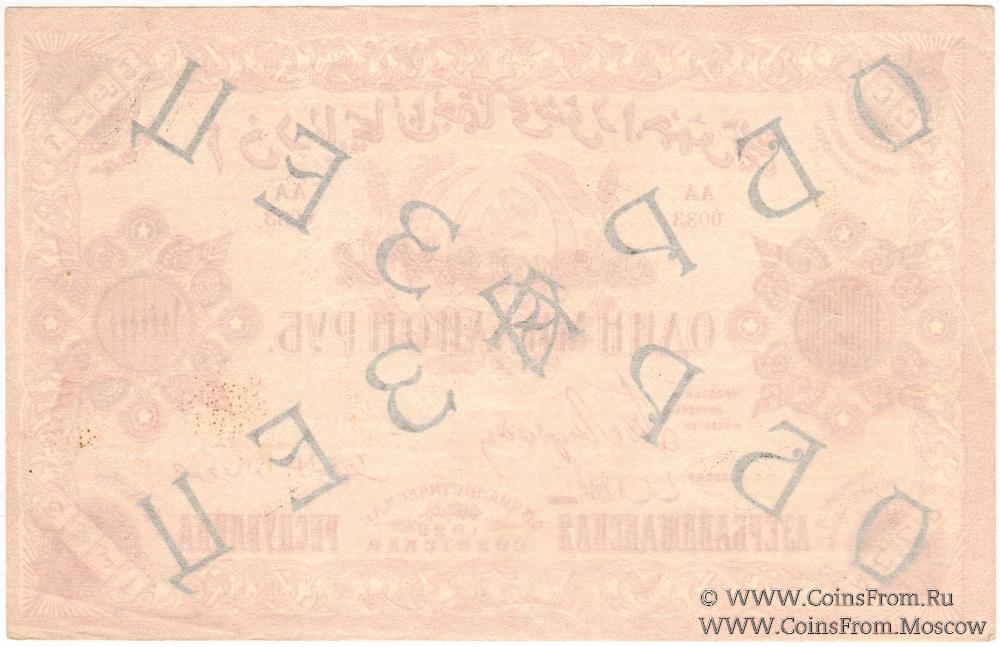 Выпуск 1922 г. ОБРАЗЕЦ (только аверс): надпечатка черного цвета "ОБРАЗЕЦ" крест-накрест. Водяной знак - "Bank Urania".