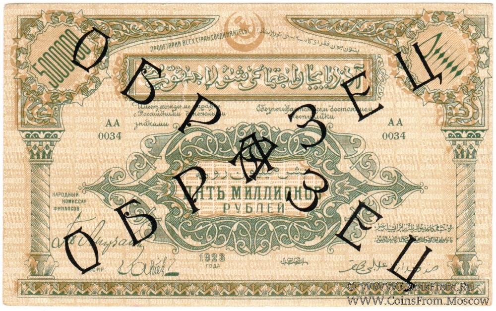 5.000.000 рублей 1923 г. ОБРАЗЕЦ