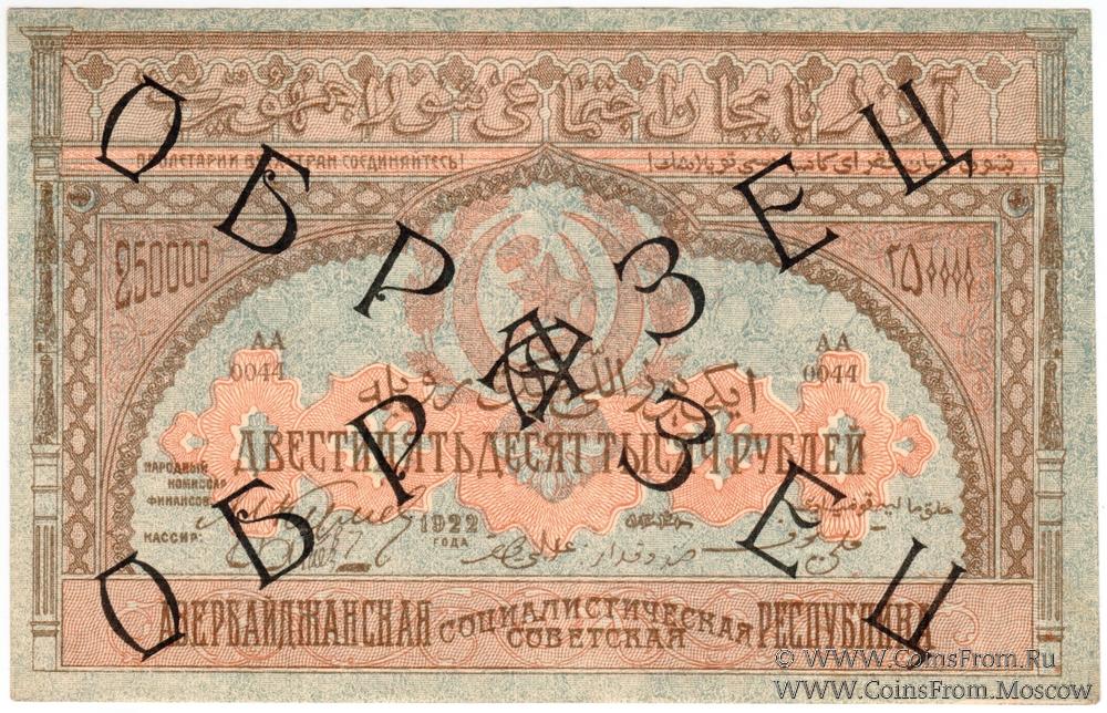 250.000 рублей 1922 г. ОБРАЗЕЦ (аверс)
