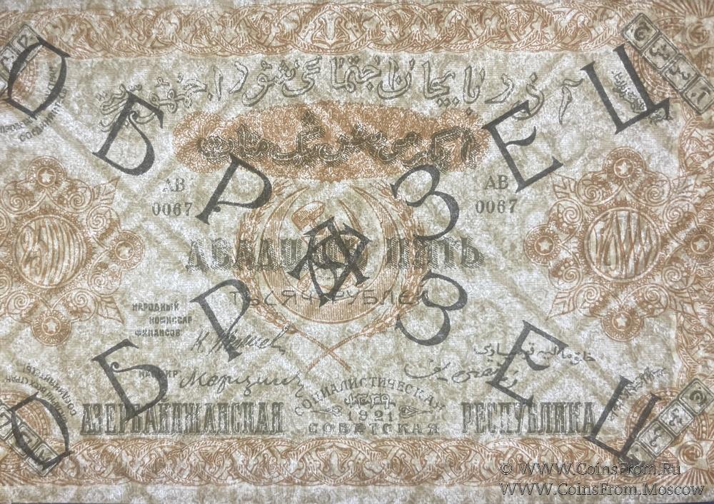 Выпуск 1921 г. ОБРАЗЕЦ (только аверс): надпечатка черного цвета "ОБРАЗЕЦ" крест-накрест. Водяной знак - "орлы".