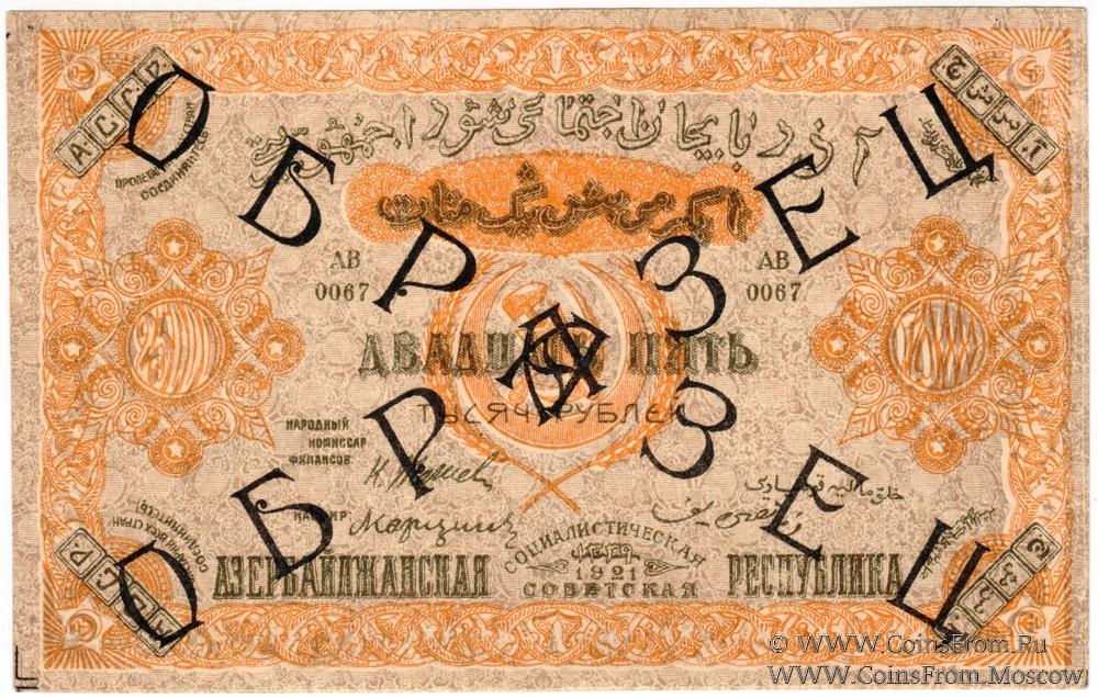 25.000 рублей 1921 г. ОБРАЗЕЦ (аверс)