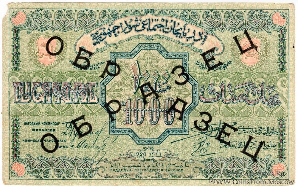 1.000 рублей 1920 г. ОБРАЗЕЦ (аверс)