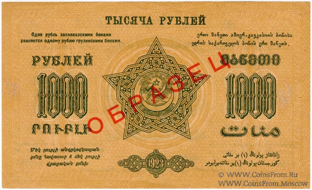 ОБРАЗЕЦ (двусторонний): диагональная надпечатка красного цвета "ОБРАЗЕЦ" на реверсе (на аверсе зеркально). Серия А. Водяной знак - "большие теневые звёзды".