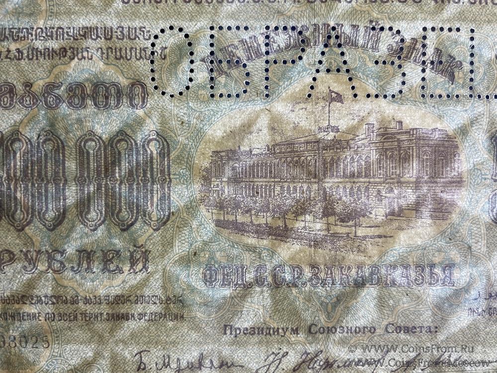 Образец реверса денежного знака 1923 г. 2 выпуск. Водяной знак - звезды. Серия А. ОБРАЗЕЦ (только аверс): горизонтальная перфорация "ОБРАЗЕЦЪ".