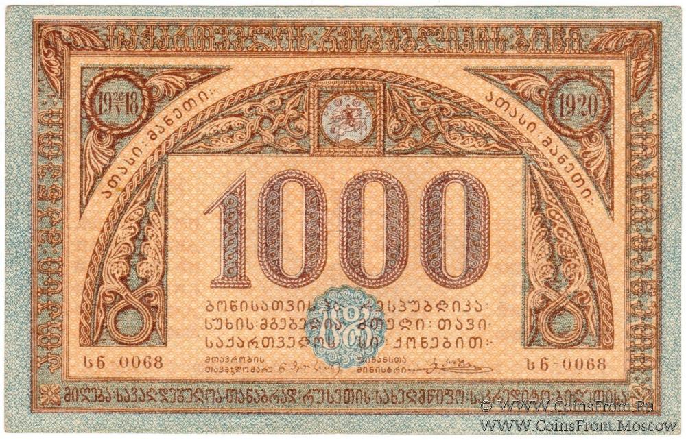 Бона 1920 г. Без водяного знака. Фон реверса голубоватый.