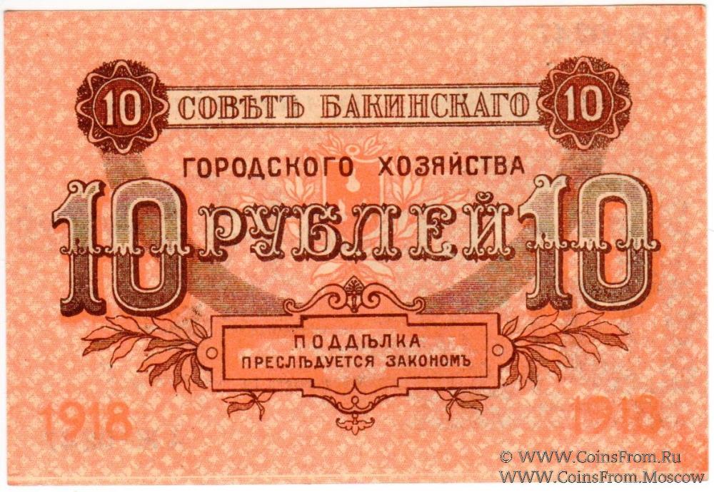 10 рублей 1918 г. (Баку)