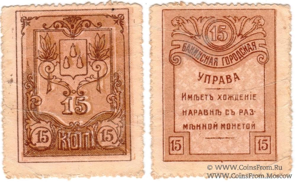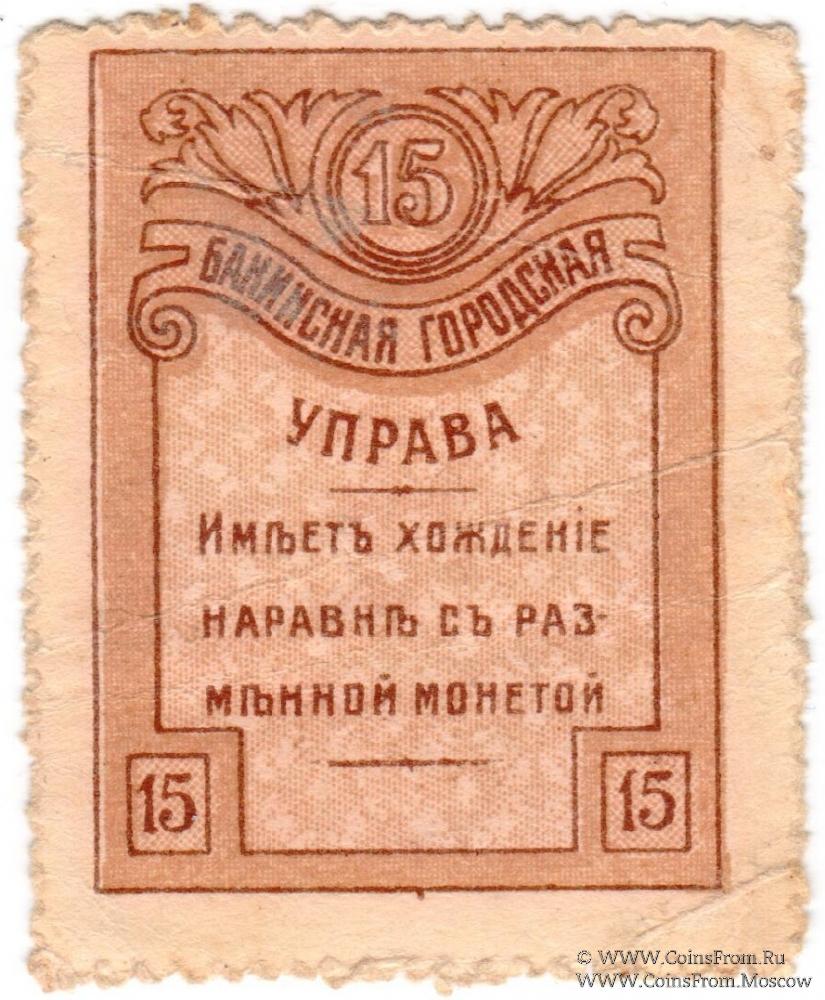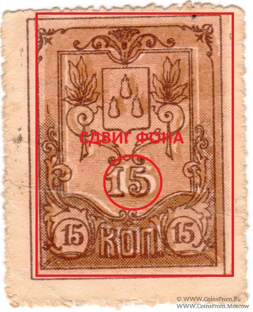 Марка без даты (1918 г.). БРАК: сдвиг фонового рисунка на аверсе. С зубцами. Зубцы нечёткие. Бакинская Городская Управа.