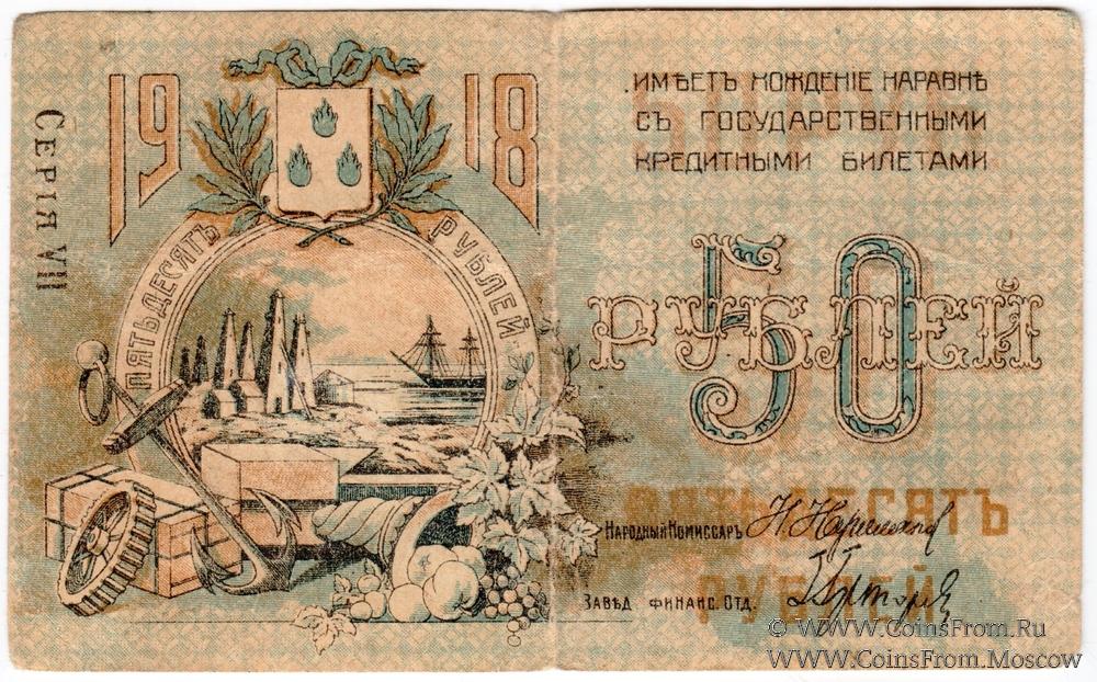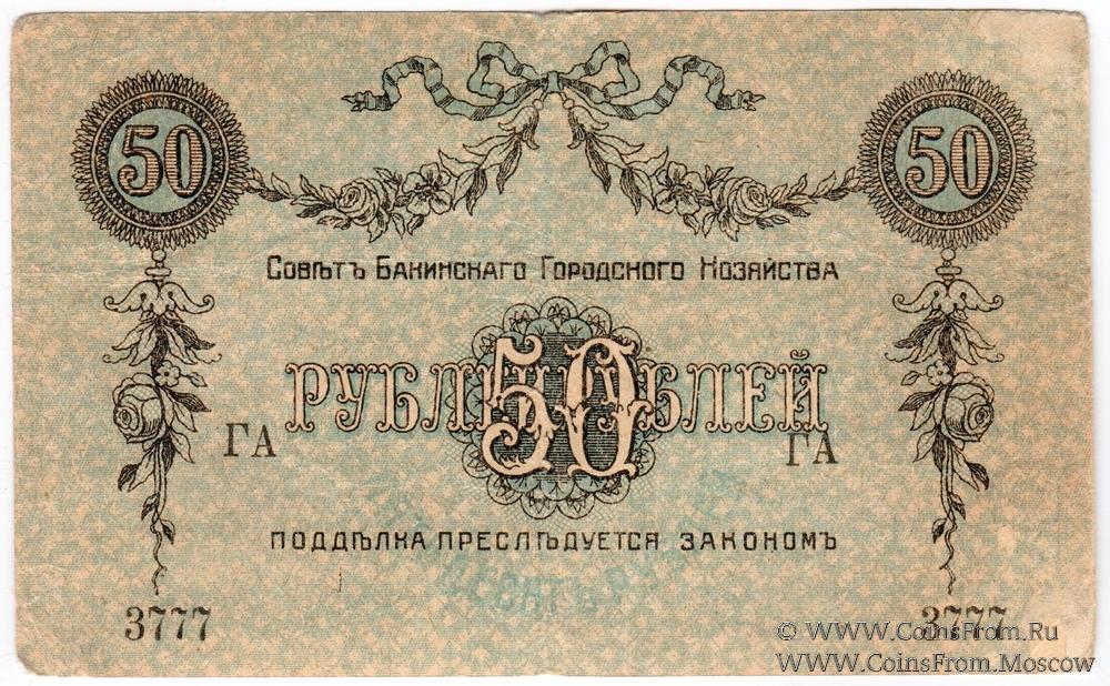 Серия VII. Номер на реверсе. Совет Бакинского Городского Хозяйства.