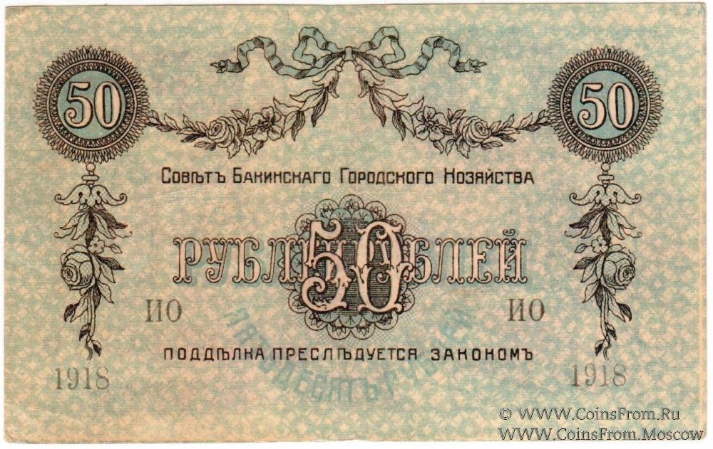 Номер на реверсе. Без серии. Совет Бакинского Городского Хозяйства.