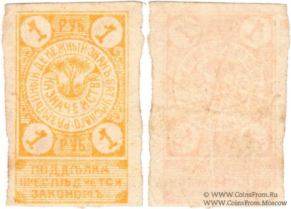 Разменный денежный знак без даты (1919 г.). Желтый. Батумское Казначейство.