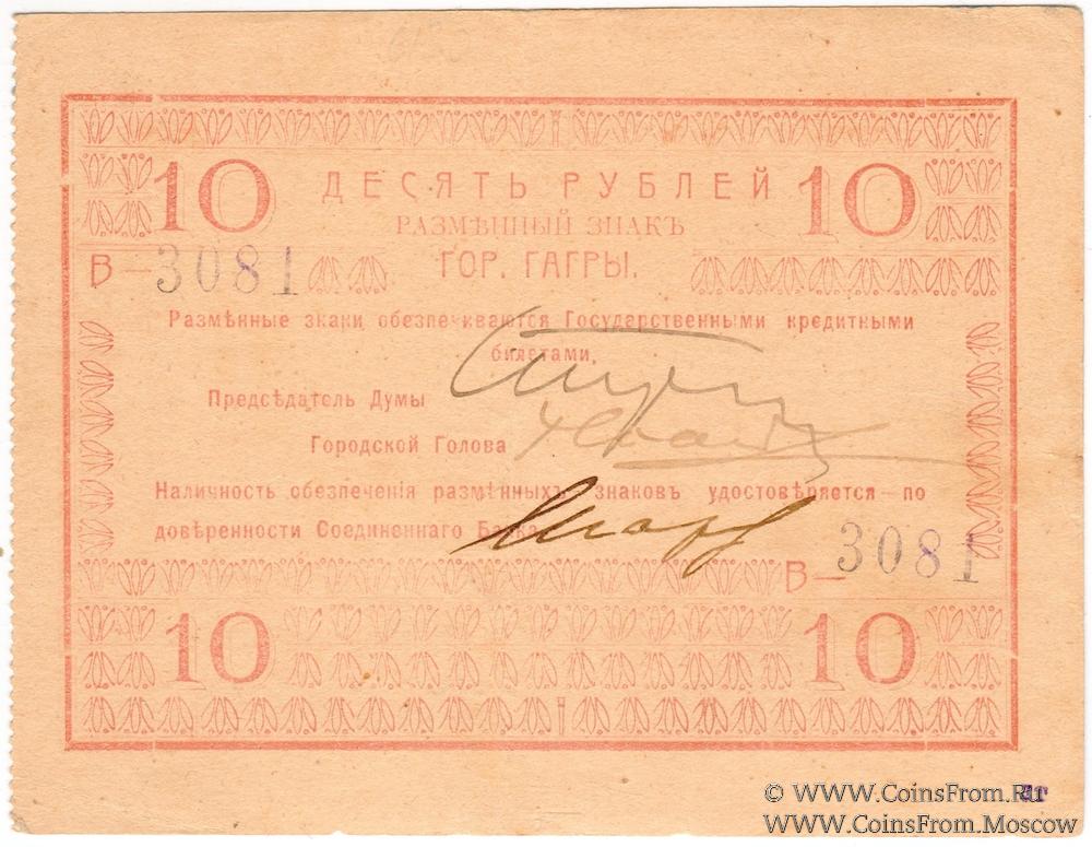 Разменный знак без даты (1918 г.) города Гагры. Городская Управа.