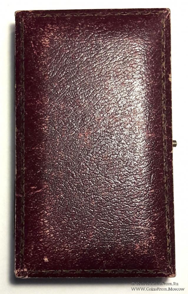 Знак Прошлому Досточтимому Мастеру Ложи COWPEN LODGE № 4824. Знакв форме наугольника с подвеской квадратной формы покрытой белой эмалью с символическим изображением чертежа к 47 теореме из первой книги Евклида (теорема Пифагора). Обе стороны наугольника с орнаментом, угол выделен квадратом с изображением четырёхлепесткового цветка. Все элементы знака, включая кольцо, выполнены из золота 9 карат или 375 пробы, о чём свидетельствуют клейма производителя.