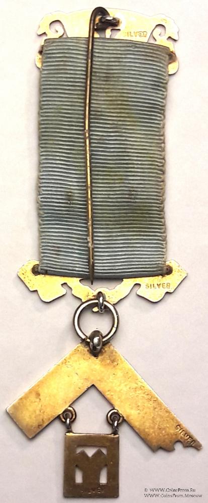 Лента небесно-голубого цвета. Верхняя колодка в виде витой ленты бело-синей эмали с наименованием и номером Ложи BENHILTON LODGE № 5541 и иглой для носки. В центре ленты эмалевый медальон в виде прямоугольника, наложенного на другой с рисунком по эмали. Нижняя колодка в виде ленты с загнутыми концами на фоне венка из колосьев с девизом на латыни: QUADRA GESIMUS QUINTUS.