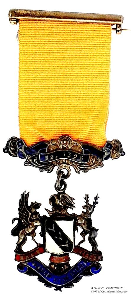 КОЛОДКИ/МЕДАЛЬОН: верхняя колодка узкая, полукруглая. Нижняя колодка в виде витой ленты на фоне орнамента с номером Ложи (№ 1325).