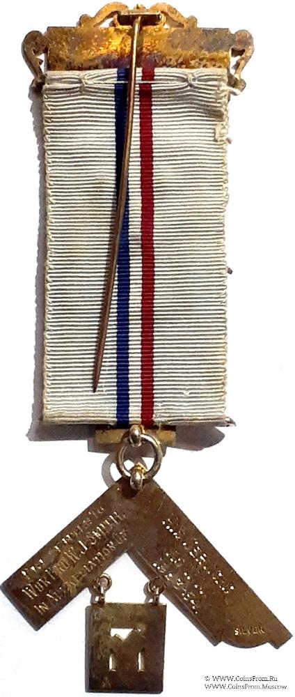 РЕВЕРС: гравировка: Presented to Wor. Bro. W.J. Smith in Appreciation of his Services as W. M. 1953-54 - Представлен Уважаемый Брат W. J. Smith в знак признательности за его заслуги в качестве Досточтимого Мастера 1953. Клейма: на наугольнике – Silver. В коробке – G. Kenning & Son, London.